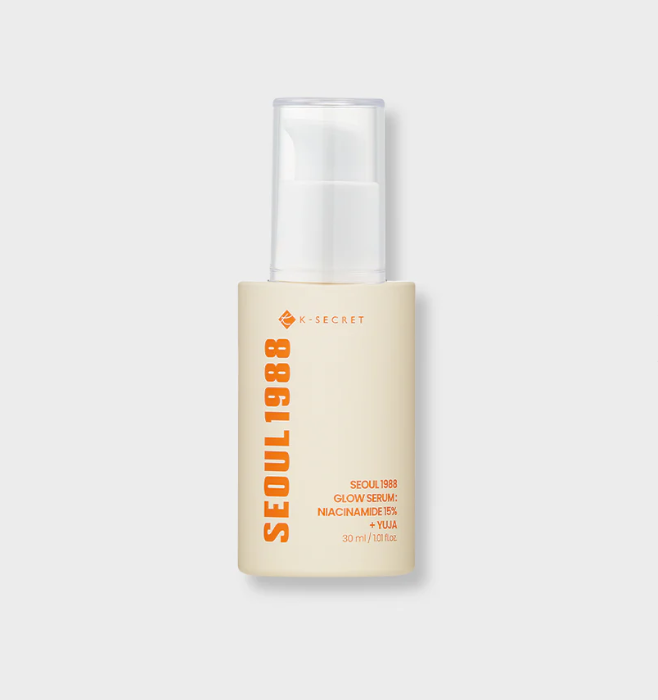 K-SECRET SEOUL 1988 Glow Serum est un sérum correcteur et illuminateur formulé avec une forte concentration de niacinamide (15 %), associée à l’extrait de yuja, conçu pour cibler les taches, lisser le grain de peau et révéler un teint visiblement plus lumineux tout en améliorant l’hydratation et le confort de la peau. De plus, la présence de panthénol, squalane et glutathione, apporte confort et protection, pour une peau plus lumineuse, rebondie et souple jour après jour.